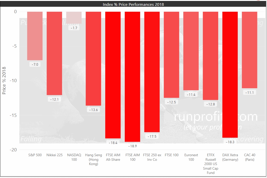 Use the scroll arrows to cycle through the FTSE 100, 250 and AIM All-Share charts for 2018 and 2018