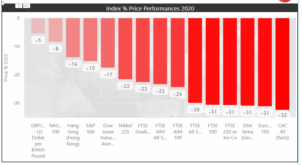 YTD the UK indices are down over 30% which compares with most European and Asian indices: what is striking is that the US indices have outperformed massively. Indeed, the NASDAQ has only dropped 8% YTD though is 26% from its ATH in Feb while the S&P 500 is down 15% YTD but 27% from its ATH. Similarly the DOW is down 17% YTD but off 28% from ATH .