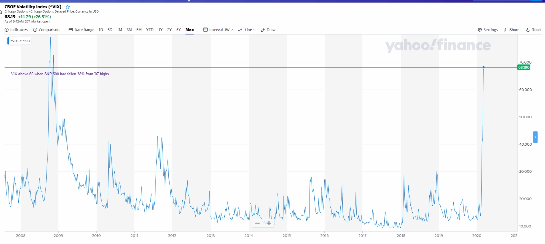 Sentiment has moved to a very extreme level of Fear which can be a signal that selling is overdone and some mean reversion is needed : The VIX is at an extreme last seen during the financial crisis of 2008 when the S&P had declined almost 40%,