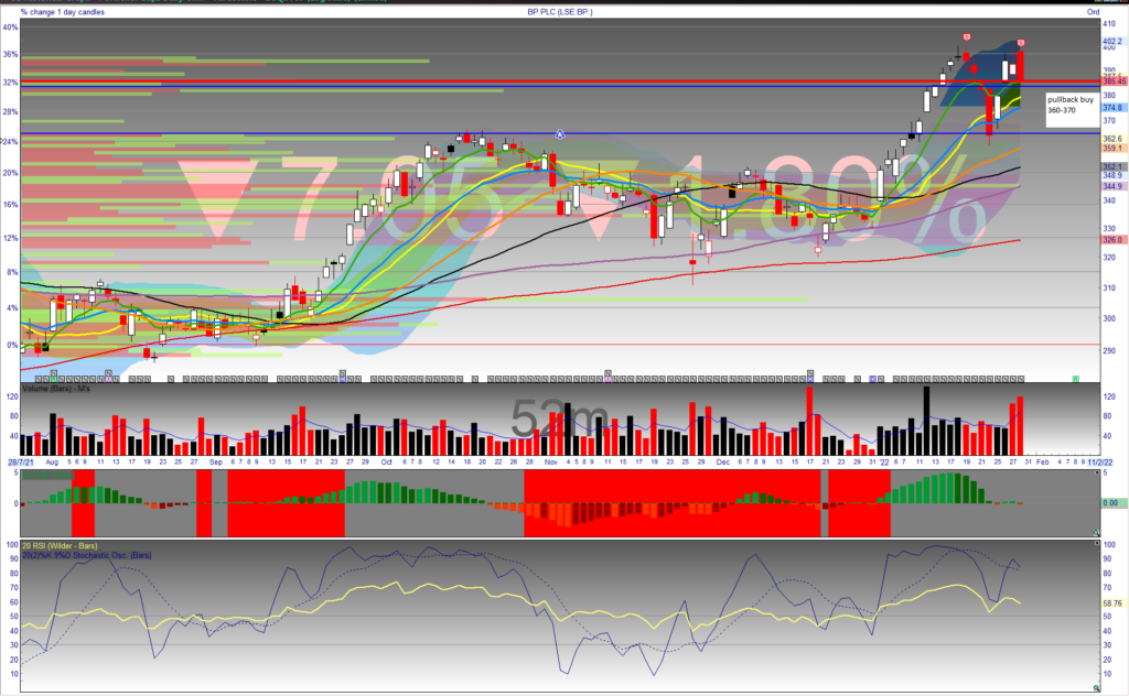 Most of the current leaders in the FTSE 100 are stretched in terms of their technicals: while they may continue to rally strongly, it is likely they will revert to a mean and consolidate some of the gains before advancing further. On indicative  charts below the yellow line is the VWAP - a volume weighted average price: this is a good line in the sand for price as shares advance. They will frequently check back into this area and  find demand before advancing further, fallback and stay below it the trend changes or oscillate around the VWAP as they consolidate moves. This is all heavily dependent on overall market behaviour and sentiment. Paradoxically, if we experience a sharp relief rally in mid and small caps following the recent sell-off: many of these big winners in January may well pillback: these are likely to be buying opportunities assuming the pullbacks are oderely and  align to some simple setup rules