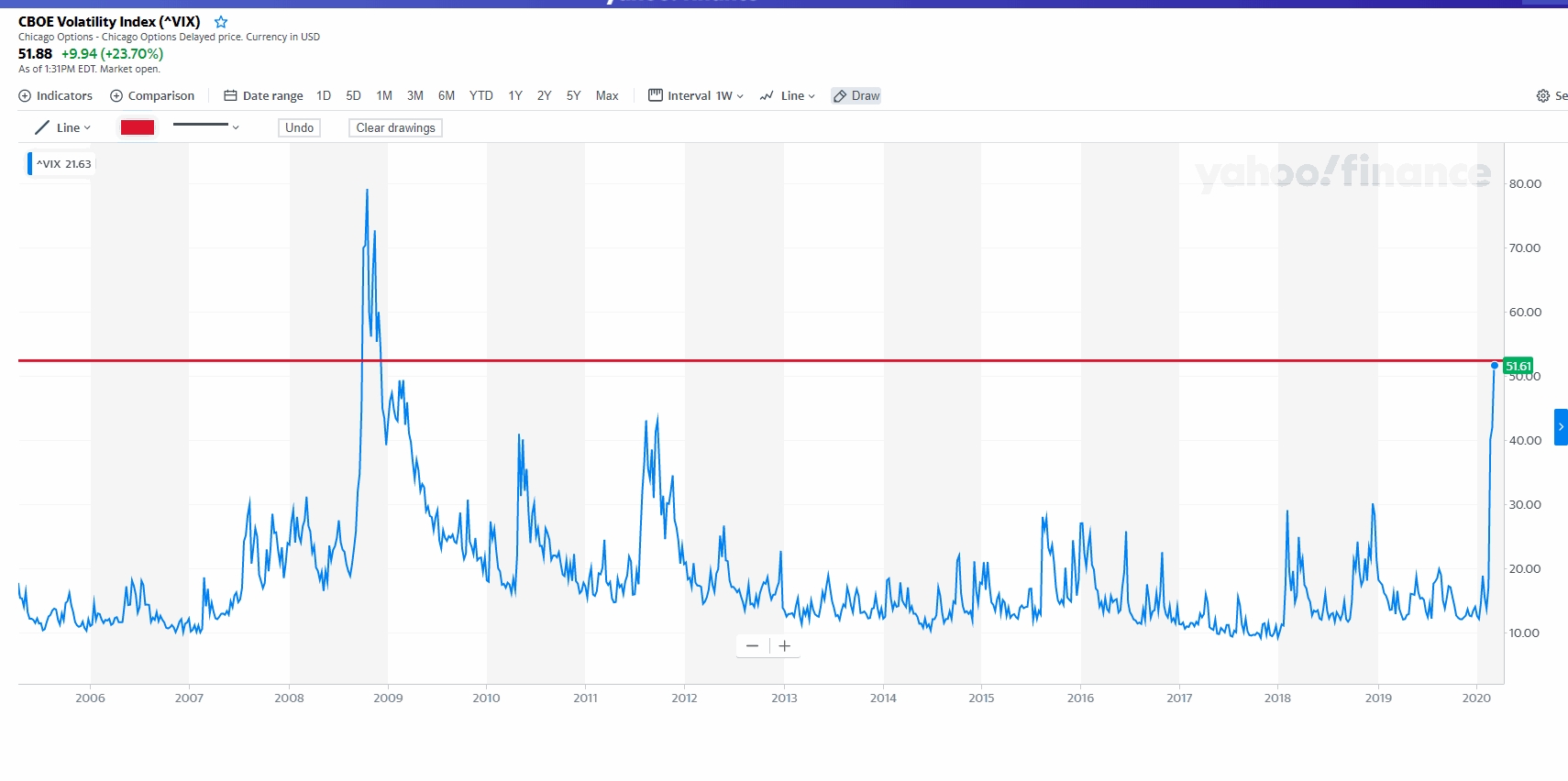 The Fear and Greed index has dropped to 4 and is running out of road to go any lower while the VIX has spiked above 51 : this is now at levels last seen in 2008 (see Figure)