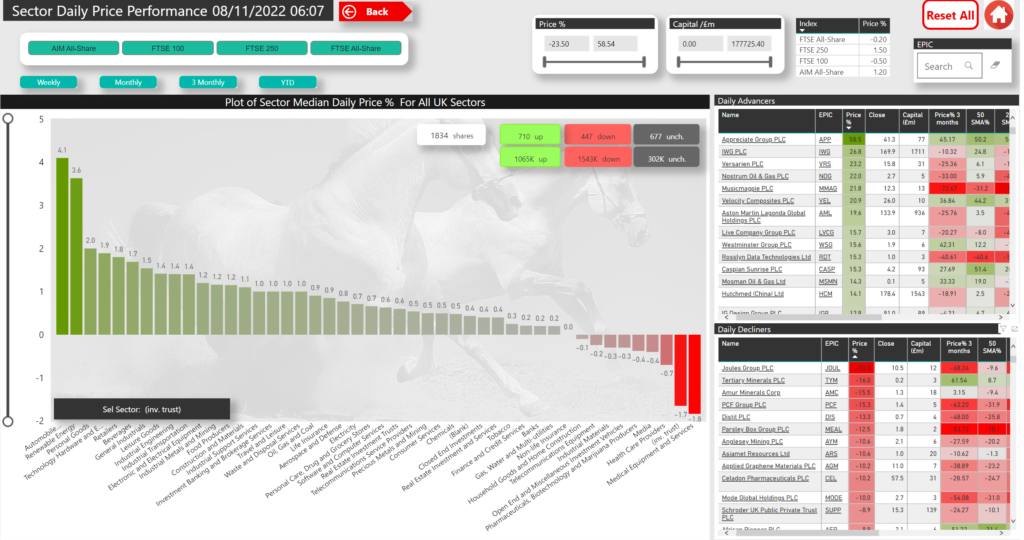the AIM 100 index takiing out the 50MA yesterday for the first time since August 2022. AML jumped 20% while Renewables as a sector gained 3.4% with PODP +11% and CWR +11%