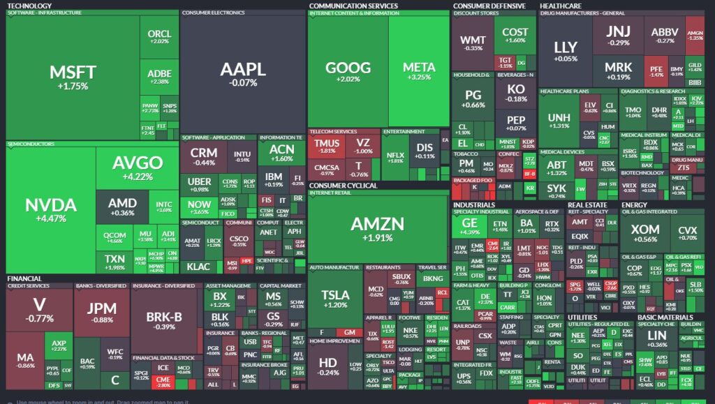 In the US S&P 500 made a new all-time high as Tech led the index higher semi-conductors outperforming ,Nvidia adding another 4.5% to new ATHs - heatmap