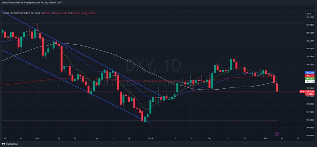Dollar index has made a move towards the 102 level in advance of NFP today, this has dropped both the 200 MA and the 50 MA in two subsequent sessions- it’s now at the key support level. Sustained weakness is bullish for a commodities and for the miners.