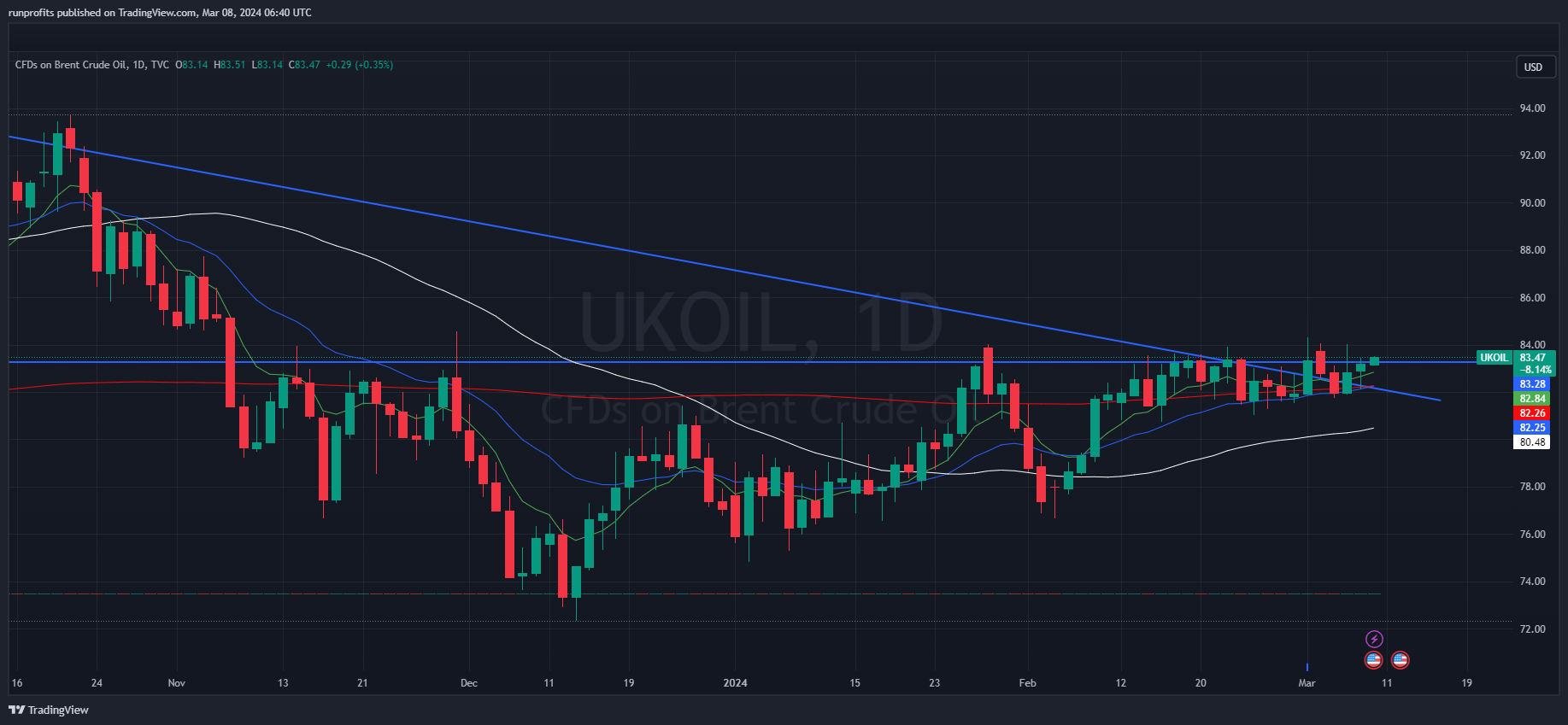 Brent oil has been consolidating in a tighter range and has held the 21 EMA as support- it looks set for a breakout to clear the $84 level which I highlighted earlier in the week. This should help lift the Oilers if it can clear resistance though this has been in play since Dec '23 so may prove resilient. US rig count later today may provide a catalys.