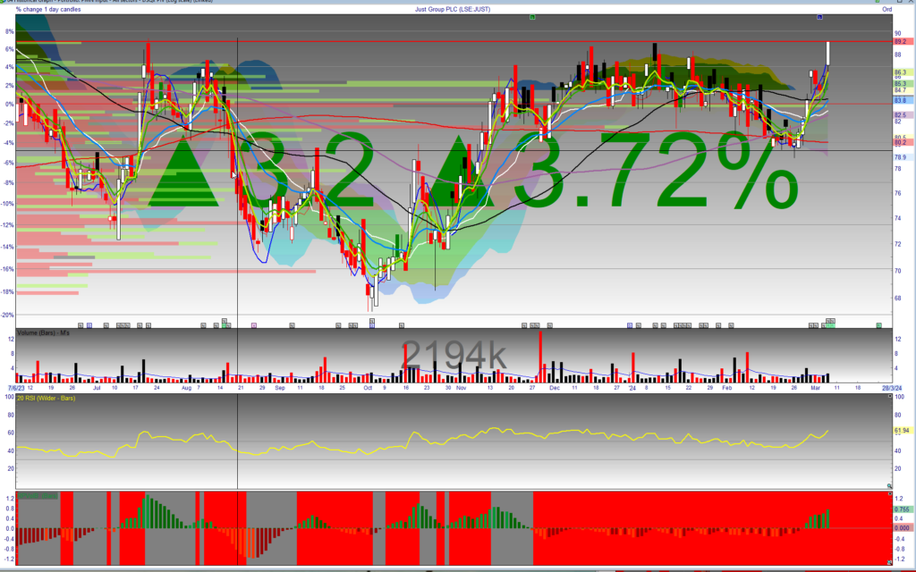 JUST chart is set-up for a breakout through the 90p resistance level and strong results may be the catalyst needed - it has been outperforming the sector recently so likely strong expectations into these results - the very bullish outlook on exceeding expectation is likely to drive the breakout - See RNS