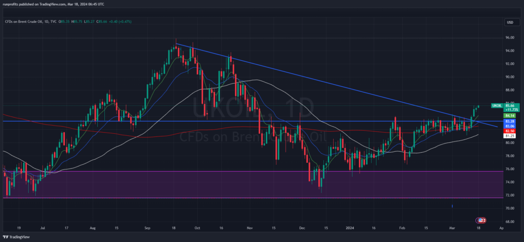 Brent oil holds its bullish bias into some resistance around the $86 level which will support oilers this week but dent travel and renewables