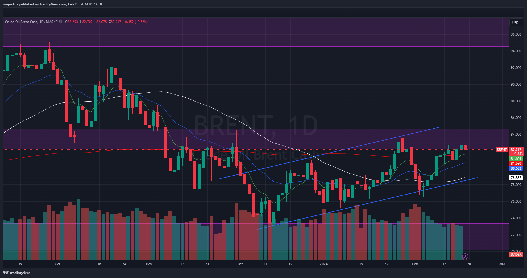 Meanwhile Brent remains rangebound and finds resistance around the area of supply north of the $83 aread - see chart