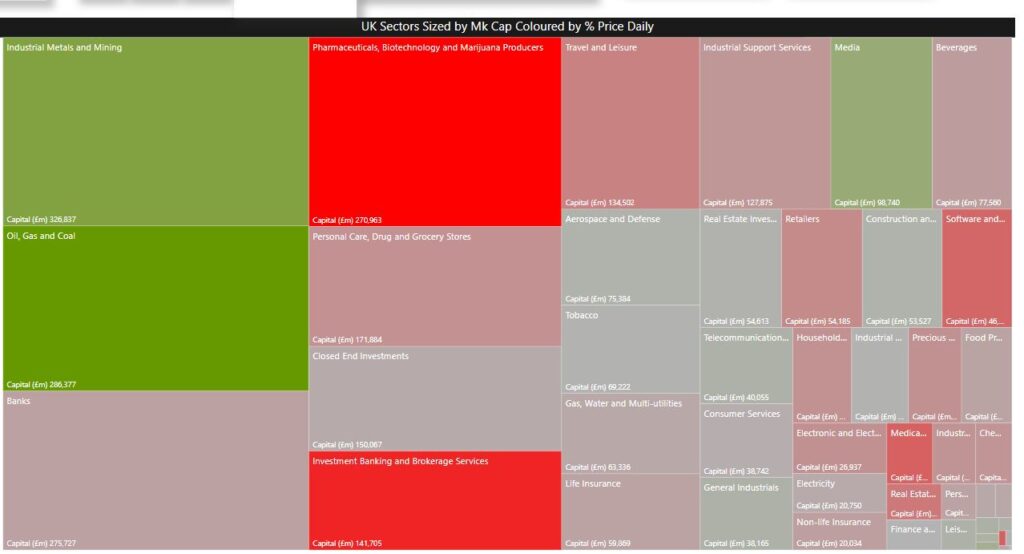 Heatmap shows strength in Oilers and Miners as well as Telecomms Equip continuing to power ahead with CYAN, Cloud Co and Eternity Networks all extending their gains (highlighted in the Weekly Wrap) , weakness in Pharma, Travel and Retaill
