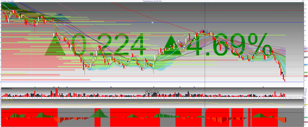 Thungela gaps off a 2 year low up 4.5% for a potential 503p