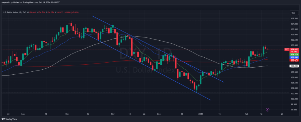 Dollar pulling back slightly but remains firm post CPI breakout CHART at $104 level -