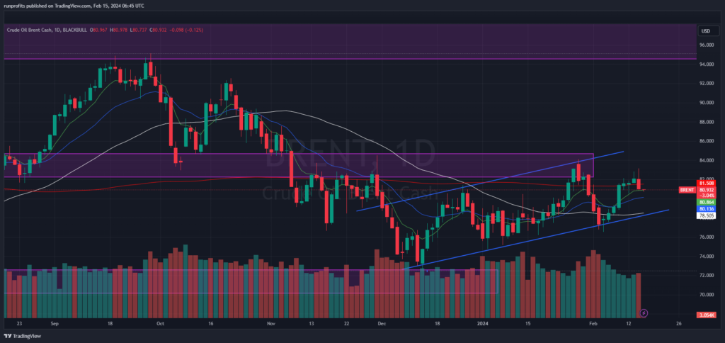 Brent crude drops below the 200MA on surprise inventory builds