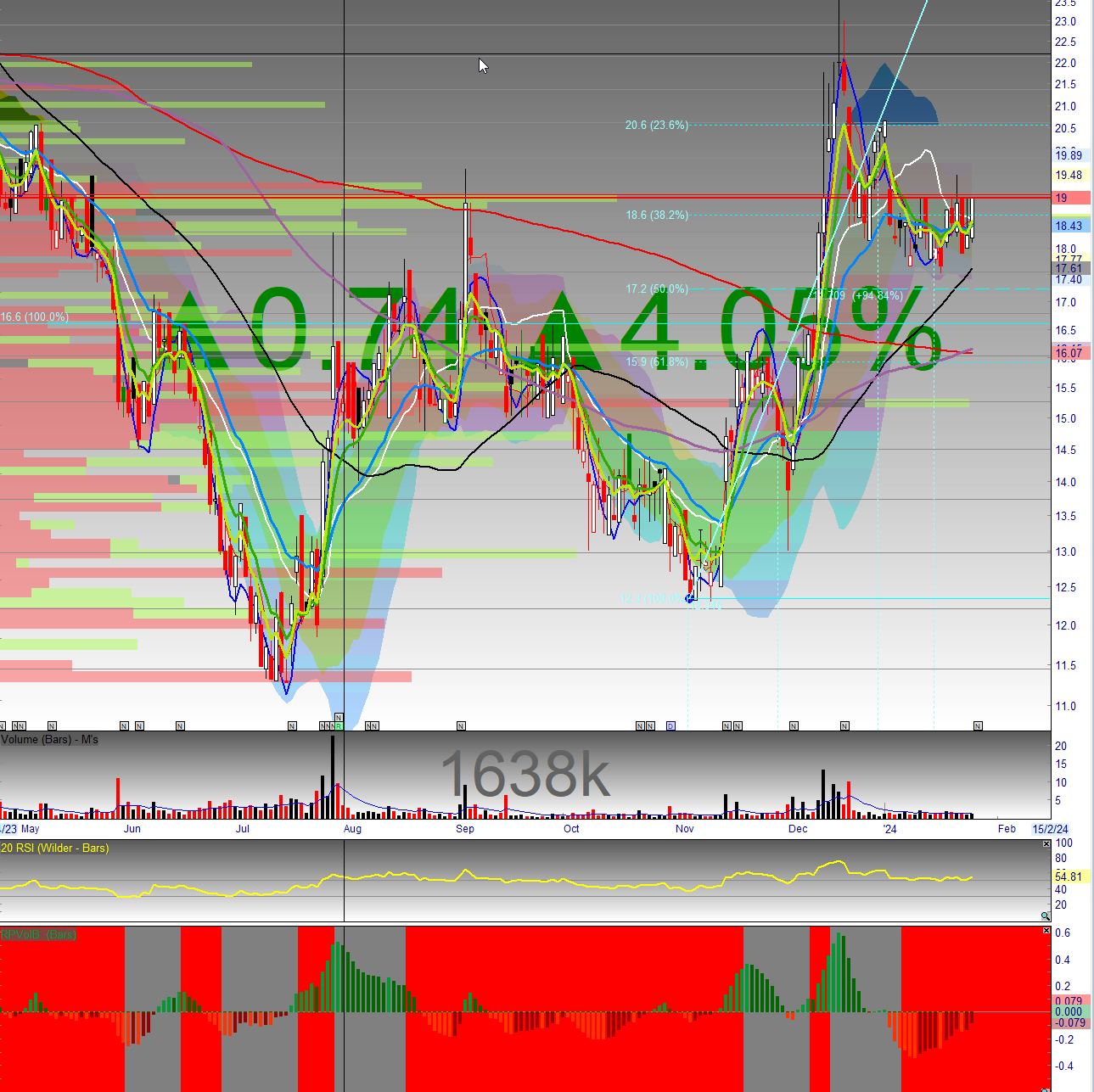 significant overhead resistance around 180p which may prove difficult to clear - watch for good volume into any move