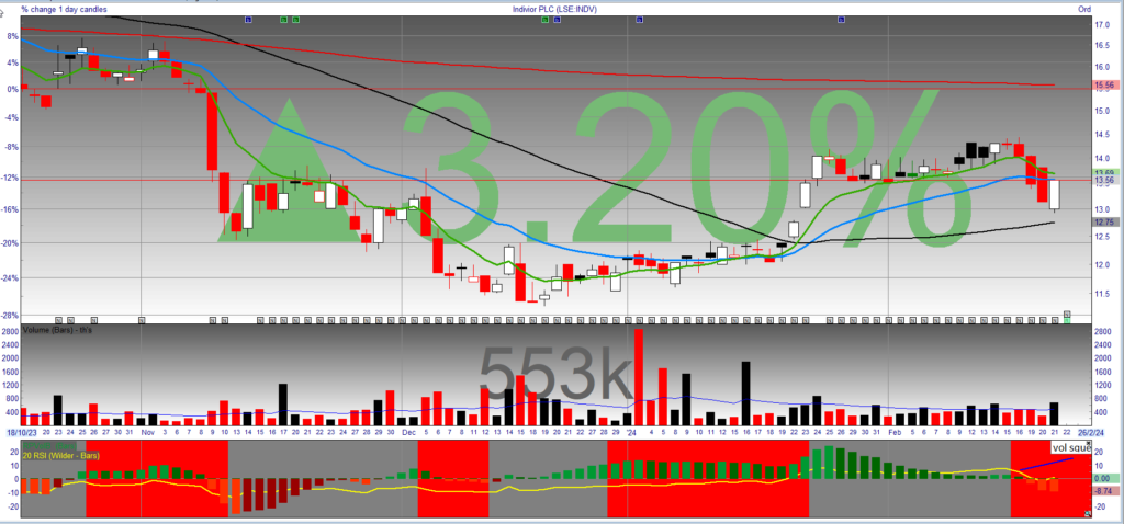 Highlighted in the weekly wrap 7 see here INDV did indeed surprise to the upside and this made a significant move plus 18% to the upside and going through the 200 MA, see the pre market analysis below: