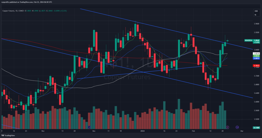 Copper remains firm and may be setting up for a move to the upside. Bitcoin continues to consolidate just below the $52,000 level and is testing but respecting the 8 EMA support
