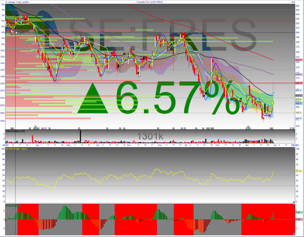 Fresnillio FRES Finally Breaks out +6.6% gapping above the 50MA resistance