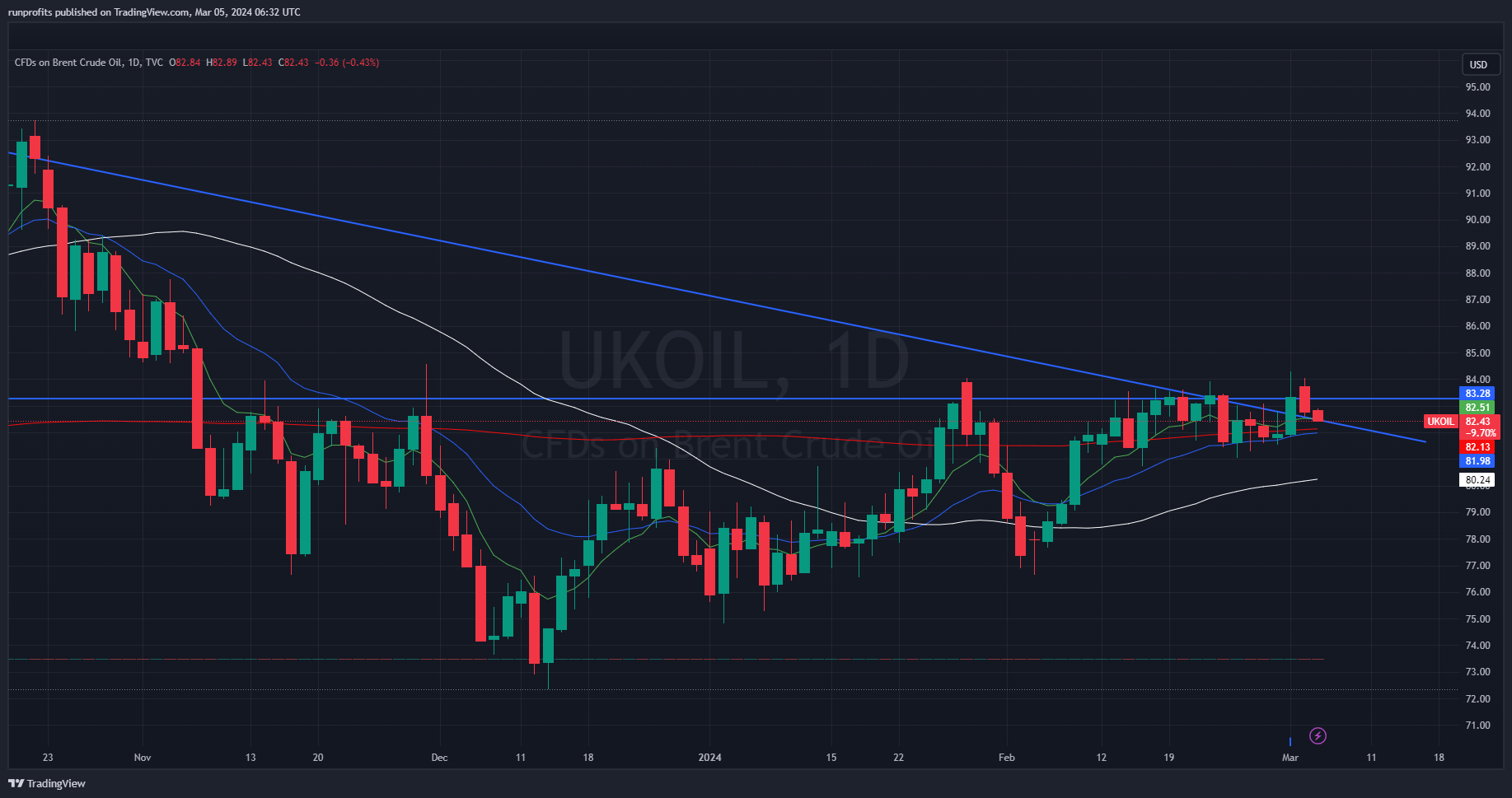 Oil continues to struggle at the $84 level of resistance despite production cuts