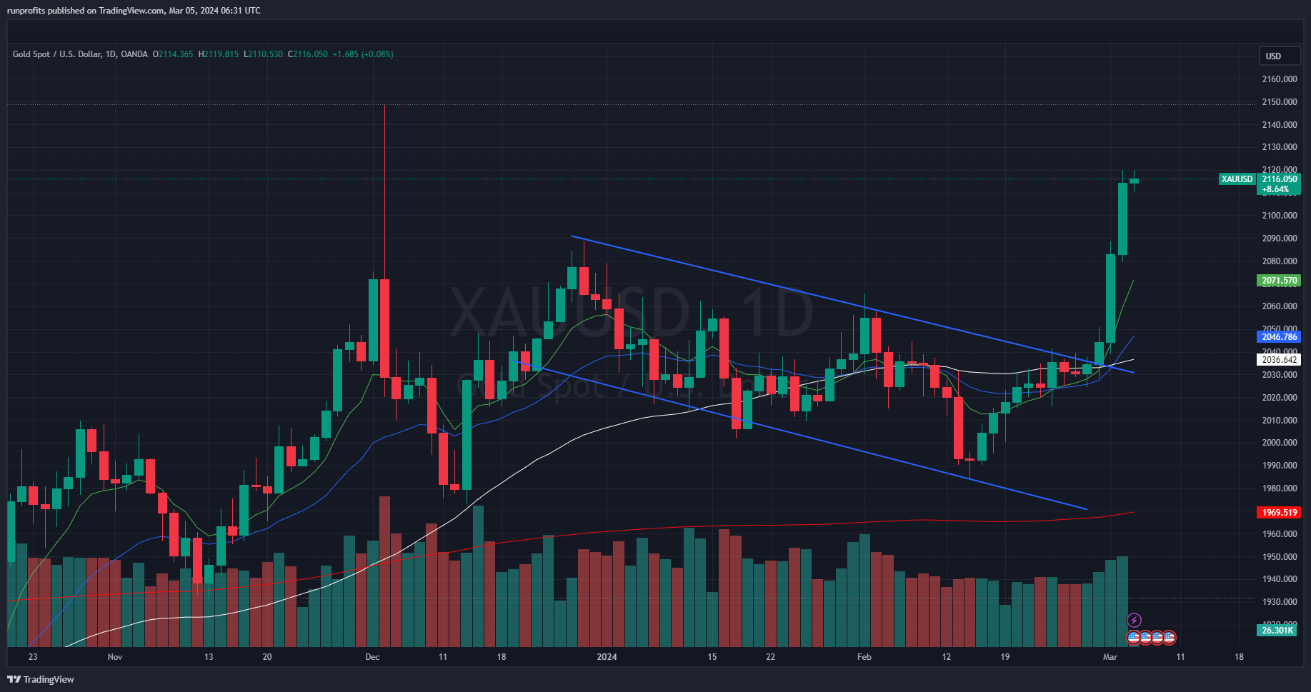 Gold making a second major move to clear $2100