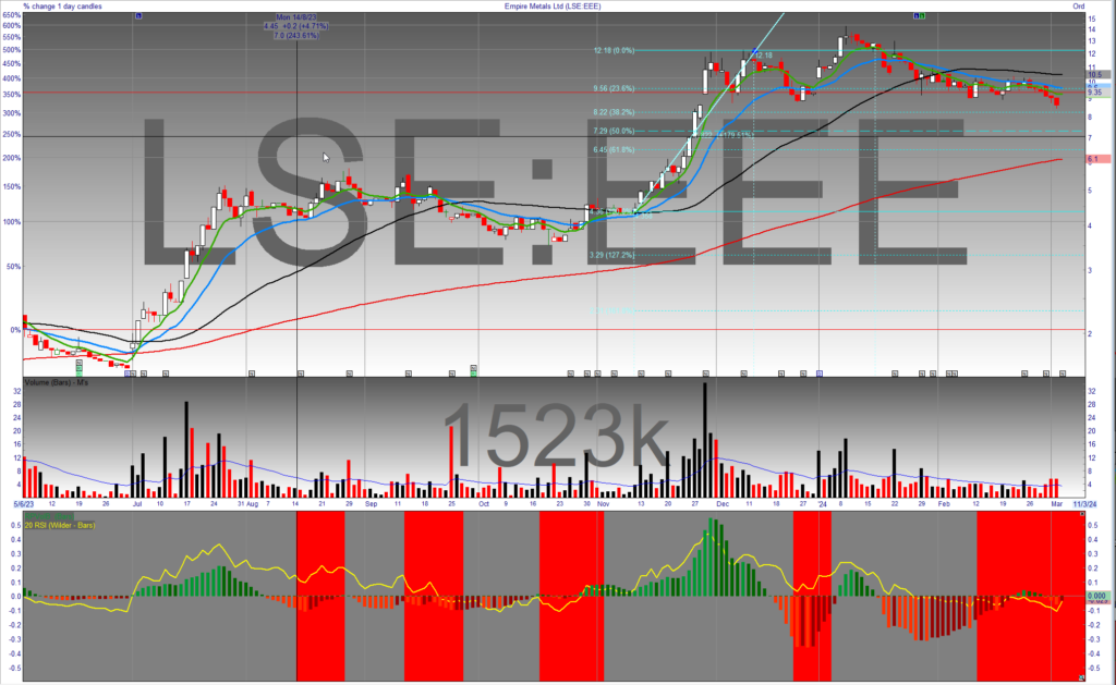Empire Metals EEE on updated metallurgical assessment and titanium estimates - see RNS Chart is set up to resume north after a period of consolidation