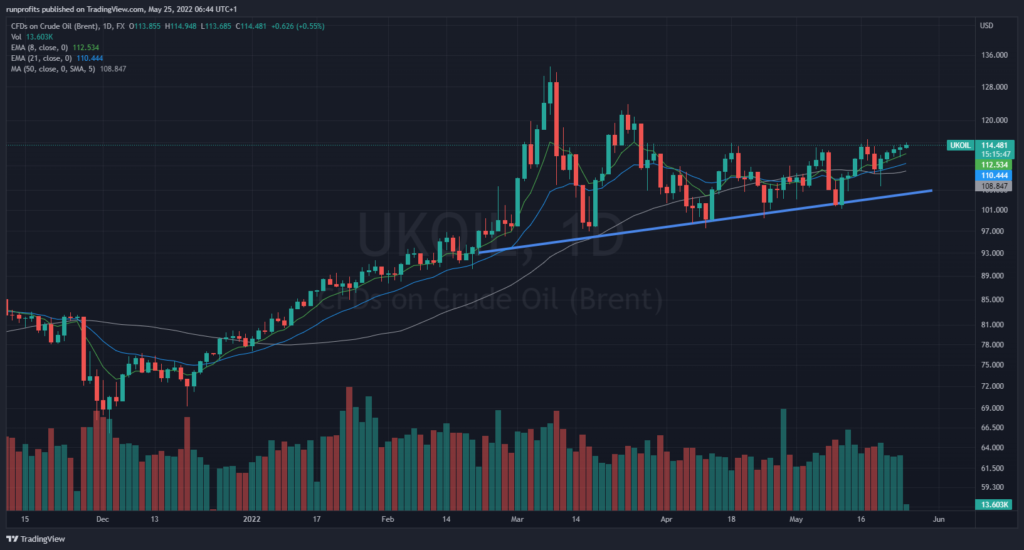 - Brent crude i>$114.4 looking set to break north from bull flag (crude inventories later today\)