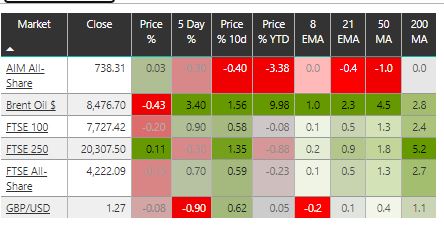 The mid cap FTSE 250 and the small cap AIM All- share close the week relatively unchanged and remain in sideways consolidation modes