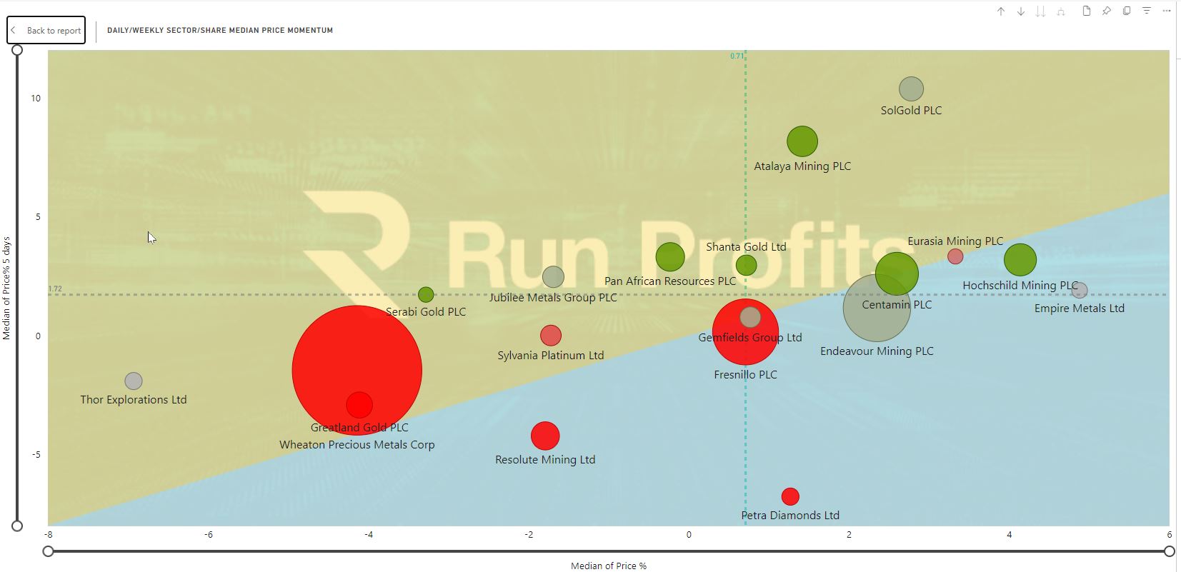 We also saw continued strength in the precious metals as silver, palladium and platinum had a good week in green. By contrast, both uranium and iron ore had a particularly bad week: the latter being down over 13% on the week. This resulted in selling in a number of the related UK names including Yellow Cake , the second most traded AIM name down 6% on the week (see UK Most Traded ).Having traded this in the past with excellent profits, I'll be looking to get long again assuming uranium finds support.